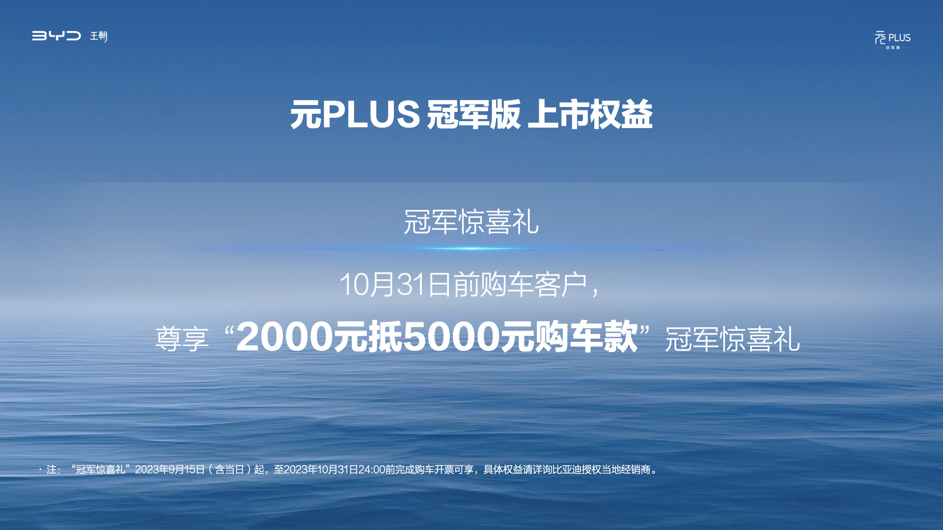 全球热销,冠军焕新!元PLUS冠军版上市13.58万元起